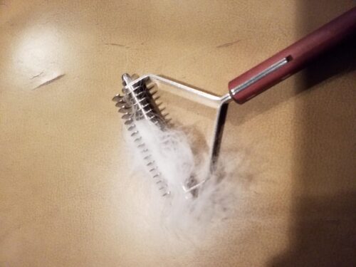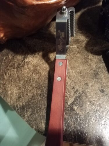 I have three long-haired cats and this awkwardly glides over their fur. However, it still lightly trims their hair and removes some fur as can be seen in my photo. The handle is easy to grip and hold during use. The blade is easy to clean.